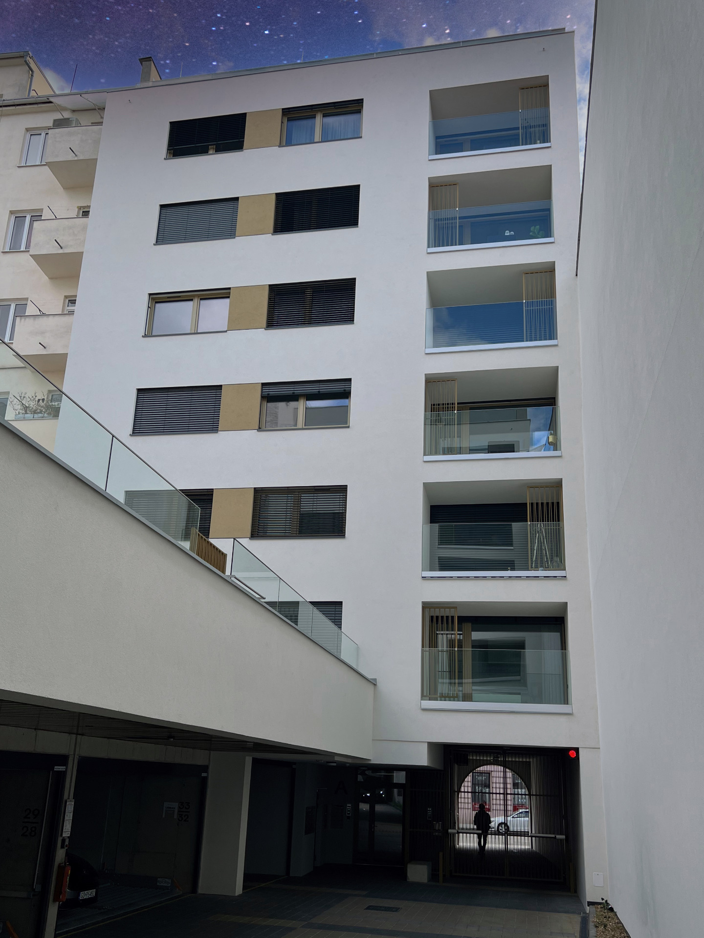 Byt o ploše 27 m2 je vedený jako "Ateliér", je umístěn ve 2.NP cihlového domu s výtahem a je orientován na jih do vnitrobloku s prostornou terasou.